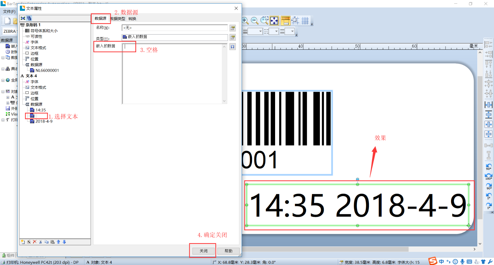 设置完成后,直接点击打印,弹出打印对话框,在这里我们可以对序列号,打印的数量进行选择和调整了 2、在标签中插入当前时间和日期的步骤 选择添加文本--选择数据类型--选择类型--选择时间表达格式--确定 跟着下图一步步走 在时间数据上右键点击新建,选择嵌入式数据类型 选择要更改的文本--数据类型--日期格式--确定 在数据中加一个空格,让时间日期显示更加美观,标识更明显,是不是好看很多了? 3、在序列号中每间隔4个字符加入“-”, 选择文本-转换-字符模板 大家注意一个问号代表一个字符,设定完成后,显示的效果更加直观了。 本文向大家介绍了Bartender2016 常用到的一些便捷类功能的设置,后续我们将陆续介绍更多的好用实际的功能,欢迎大家继续关注我们的网站。